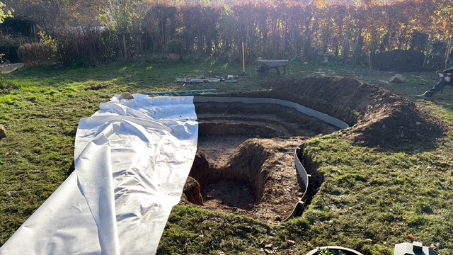 The Oase Pond Edging and Spikes were installed before the underlay and liner.