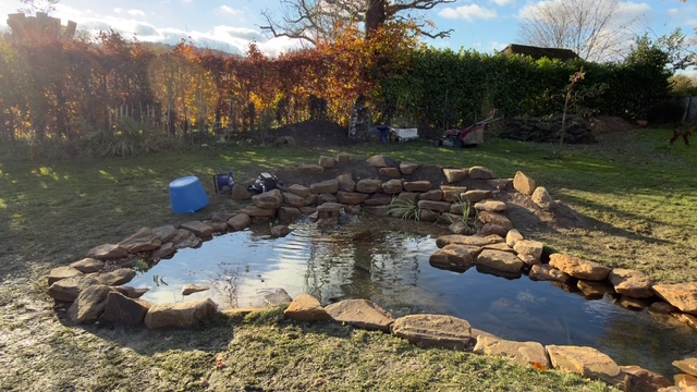 With no machinery on site, the entire pond was dug by hand.This allowed us to create:
